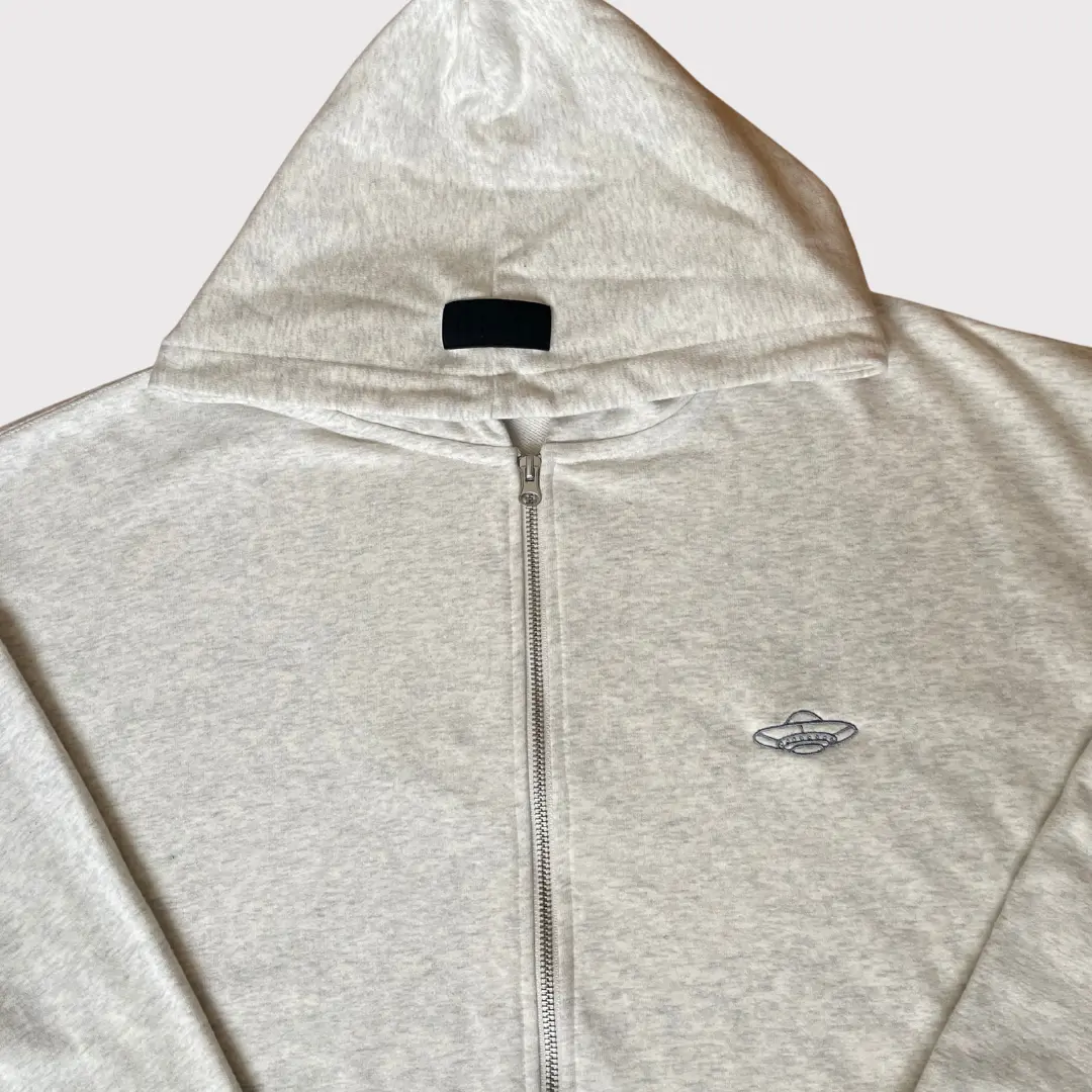 Fabricada en 100% algodón de alto gramaje, esta zipper hoodie en color gris claro es todo lo que un buen básico debe ser: suave, resistente y con un fit relajado que se adapta a cualquier rutina (terrestre o intergaláctica). Su diseño con cierre completo te permite usarla abierta o cerrada según el clima, y su tono neutro combina fácilmente con todo tu guardarropa.