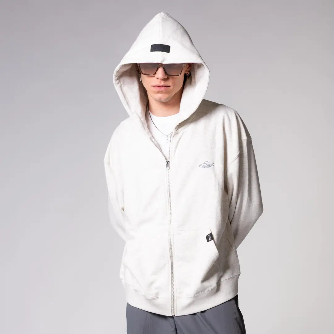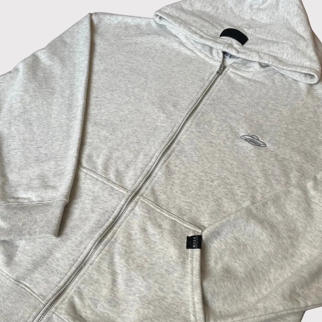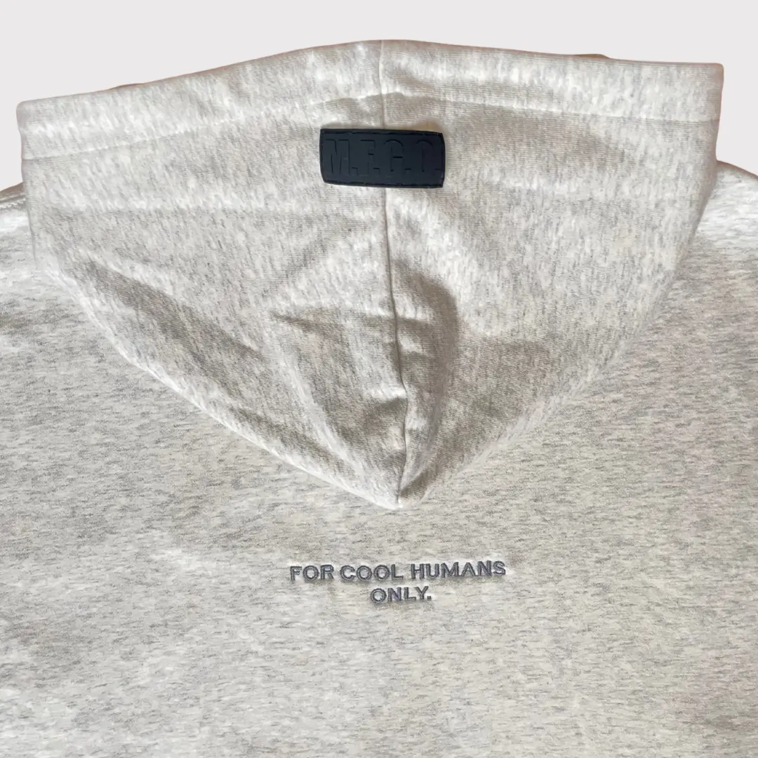 En el pecho, lleva bordado el ícono más representativo de nuestro universo: la nave espacial de Fred The Alien, discreta pero con mucha actitud. Y como en MFGO los detalles lo son todo, en la parte trasera lleva el mensaje “FOR COOL HUMANS ONLY” bordado justo debajo de la capucha, una frase que encapsula el espíritu irreverente, exclusivo y divertido de la marca.